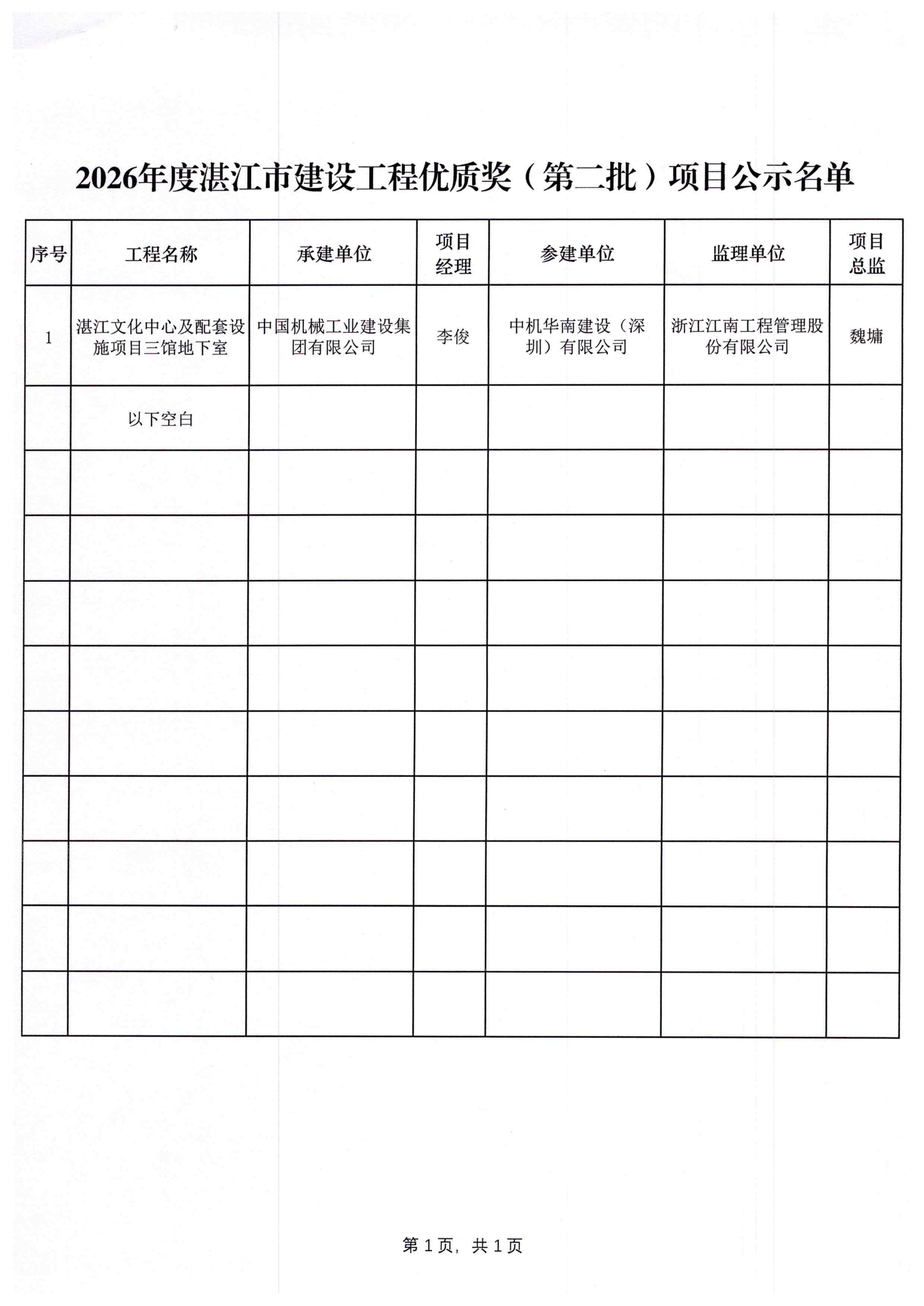 湛江市建筑业协会关于2026年度湛江市建设工程优质奖(第二批)评审结果的公示