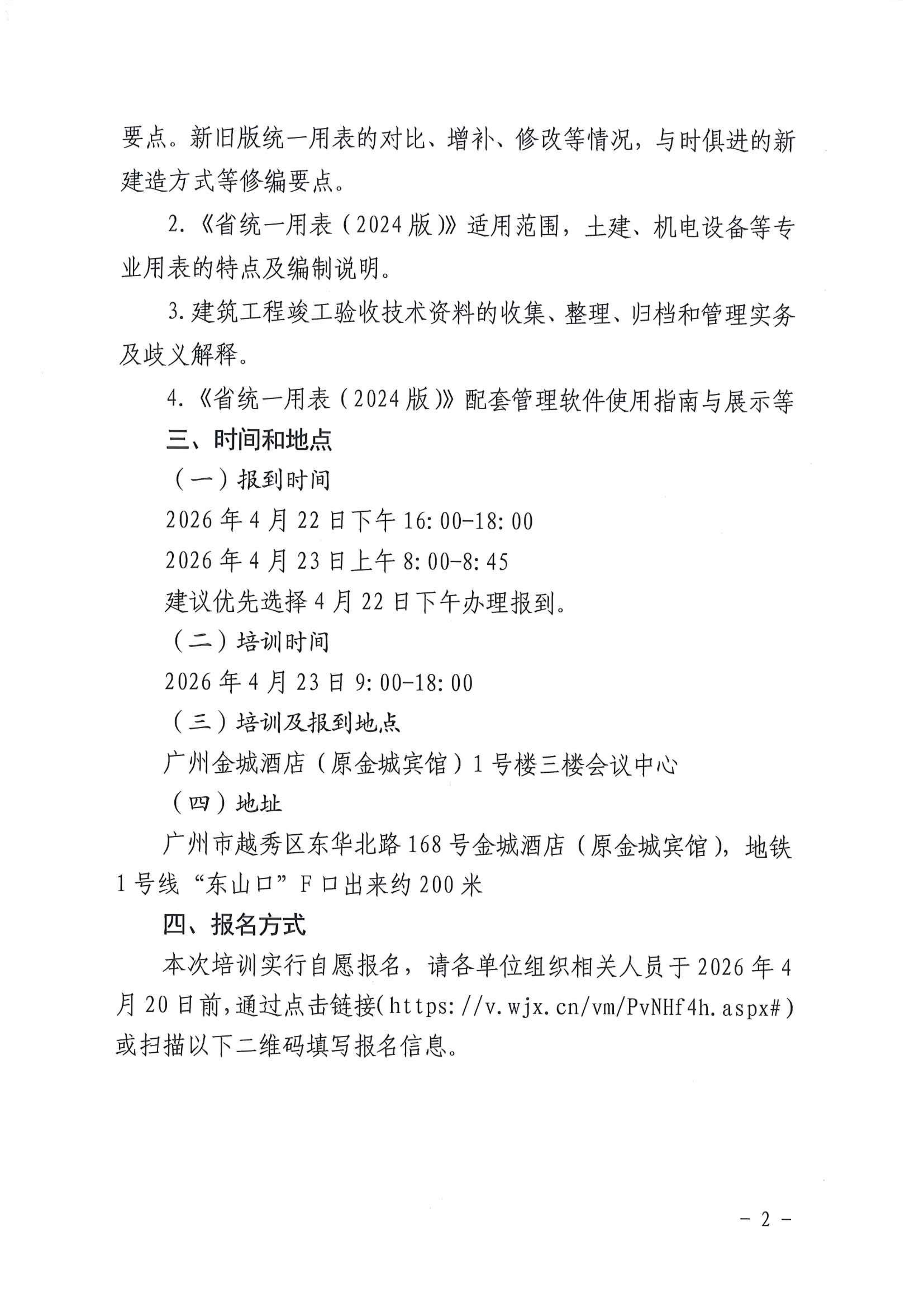 附件2:粤建协【2026】18号+关于举办《广东省房屋建筑工程竣工验收技术资料统一用表(2024版)》宣贯培训班的通知.pdf