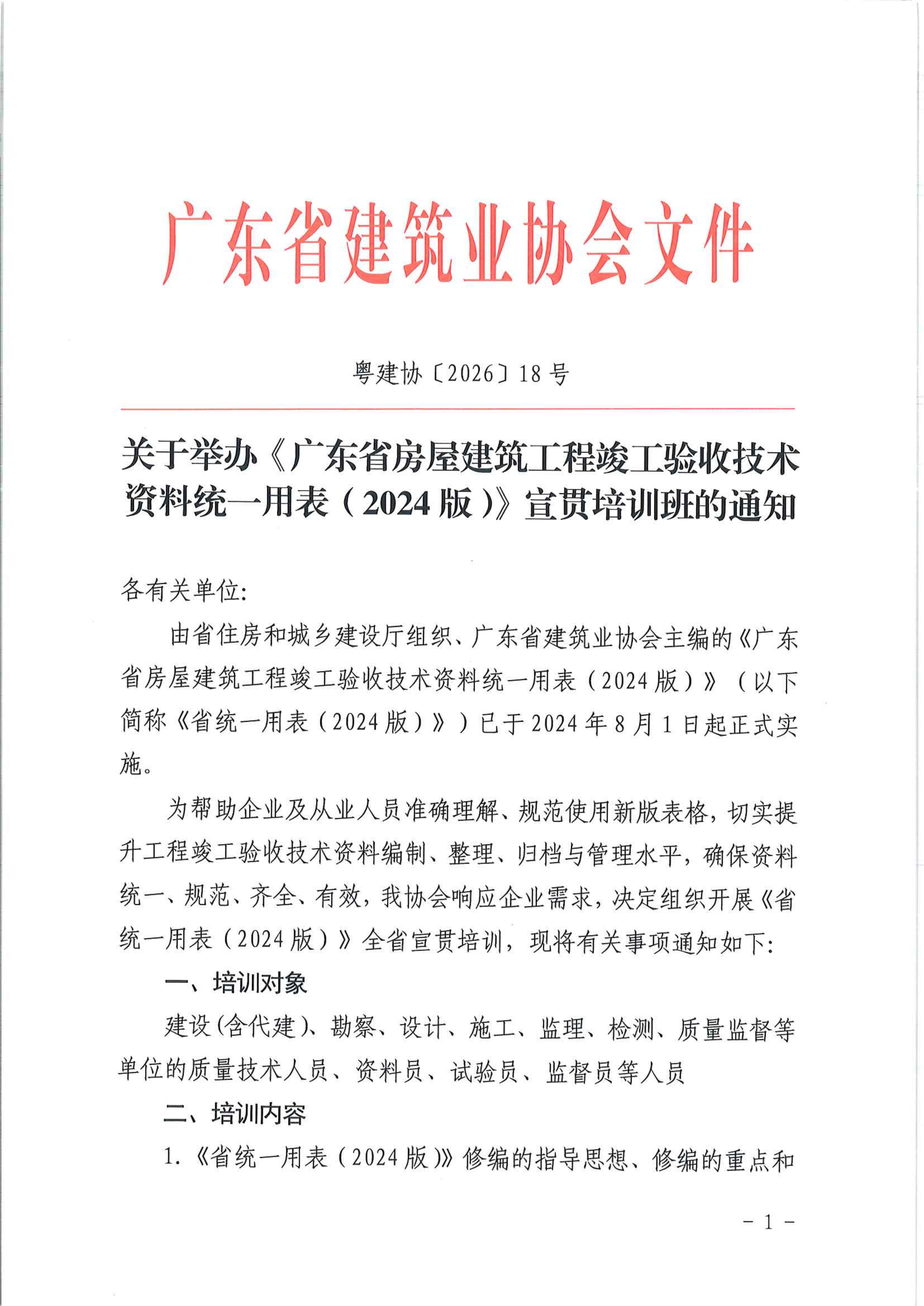 附件2:粤建协【2026】18号+关于举办《广东省房屋建筑工程竣工验收技术资料统一用表(2024版)》宣贯培训班的通知.pdf